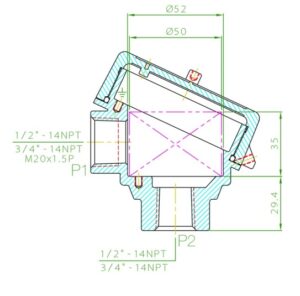 Aluminum explosion proof Thermocouple head, provided with FM/CSA certification, NEMA 4X IP66/68 rating. The connection head accommodates an elliptical block or transmitter 2″ (50mm) in diameter.