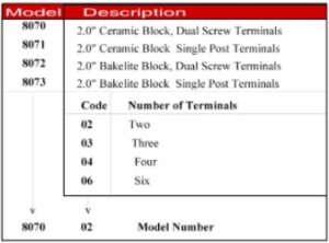 Terminal Blocks 8070 CERAMIC October 5, 2025 Posted by Octavio 05 Oct Data Sheet DIN style Ceramic terminal block with up to 6 dual post screw terminals. Four mounting holes are provided so the block can be mounted in Thermocouple head with 33mm or 40mm center to center mounting provisions. Model Number Configuration Descargar PDF